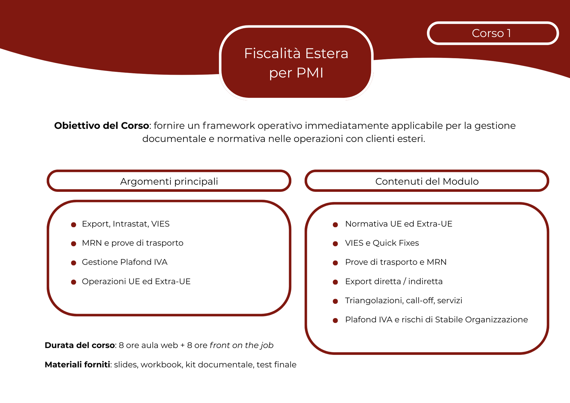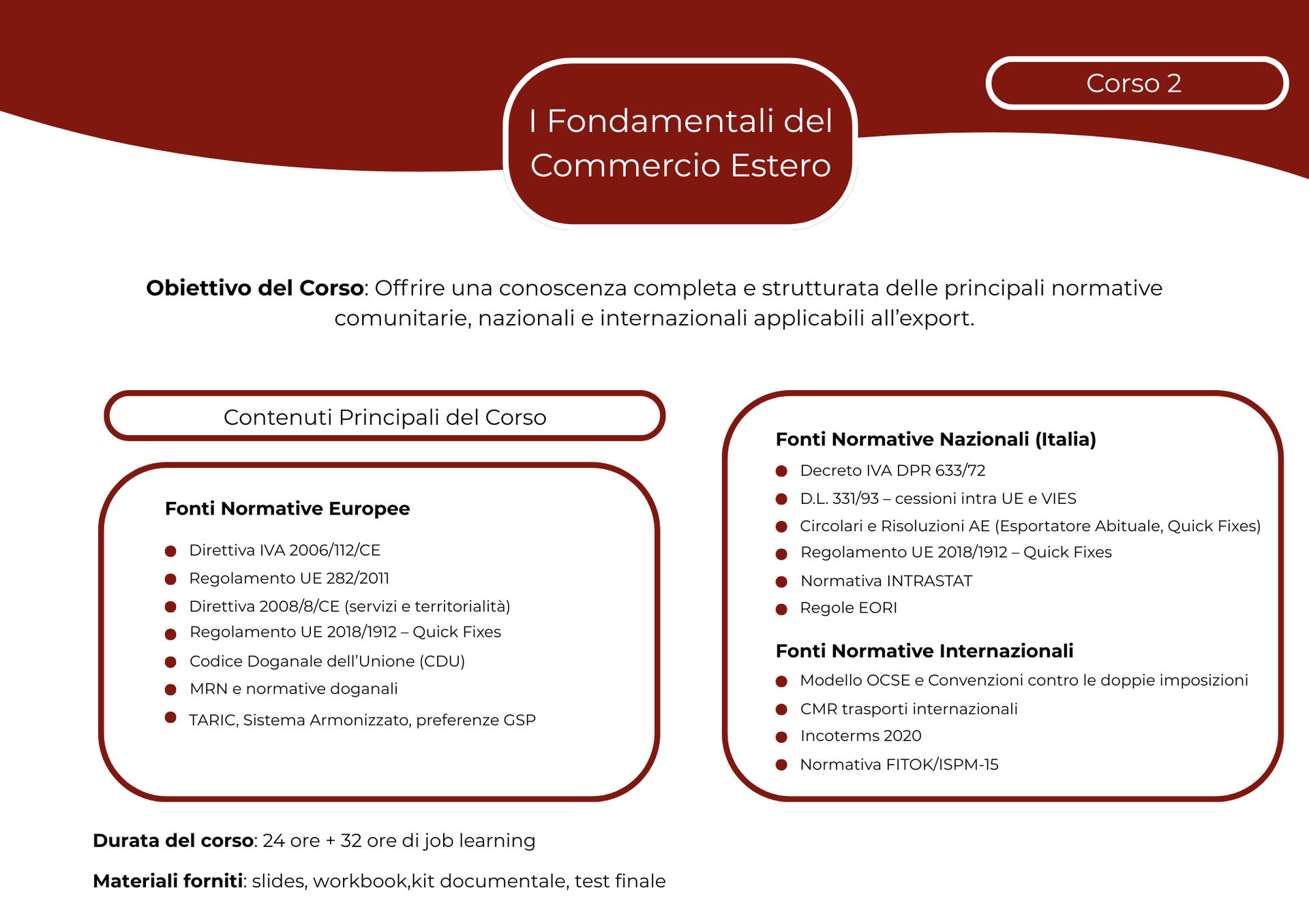 Un programma completo, pratico e immediatamente applicabile per sviluppare competenze tecniche, normative e operative in export, fiscalità internazionale, logistica doganale e tutela del brand.
